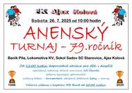 FK Ajax Kolová Vás srdečně zve na letní den plný sportu, zábavy a skvělé atmosféry! V sobotu 26.7.2025 na hřišti FK Ajax Kolová. 10:00 – Zahájení tradičního Anenského fotbalového turnaje 12:00 – Start doprovodného programu s atrakcemi pro děti i dospělé 20:00 – Začátek večerní Anenské zábavy s kapelou MB BAND Přijďte si užít den plný zážitků s rodinou i přáteli! Těší se na Vás FK Ajax Kolová