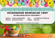 Wellness hotel Diplomat v Rajeckých Tepliciach Vás srdečne pozýva na VEĽKONOČNÉ REMESELNÉ TRHY . Termín: 04.04.2026 (sobota) Čas: od 10:00 do 17:00 hod. Miesto: prízemie Wellness hotel Diplomat**** (recepcia) VSTUP ZDARMA
