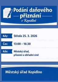 Nevíte si rady s daňovým přiznáním? Přijďte využít možnost osobní pomoci na městský úřad. Kdy: středa 25. 3. 2026 Čas: 13:00–16:30 Kde: Městský úřad – přízemí u obřadní síně Neváhejte a využijte této praktické služby. Sdílejte informaci i s ostatními, kterým by se mohla hodit
