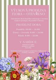 Výuková prodejna FLORA V nabídce: • jarní a velikonoční dekorace • zeleninová sadba • pokojové rostliny • macešky Sortiment bude postupně rozšiřován o balkonové rostliny a letničky. Prodejní doba: Pondělí: 10:00 – 14:00 Úterý – čtvrtek: 8:00 – 14:00 Pátek: 8:00 – 12:30