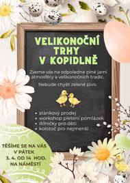 Srdečně vás zveme na příjemné jarní odpoledne plné velikonoční atmosféry, dobré nálady a milých setkání. Přijďte si užít pohodové chvíle na náměstí, kde na vás čeká chutné občerstvení, osvěžující nápoje a oblíbené zelené pivo. 🍻 Těšit se můžete na: • stánkový prodej • workshop pletení pomlázek • dílničky pro děti • kolotoč pro nejmenší 💛 Těšit se můžete také na děti ze ZŠ a MŠ Kopidlno, které si pro vás připravily vlastní stánek. 📍 náměstí v Kopidlně 📅 pátek 3. 4. 🕑 od 14:00 Těšíme se na vás! 🌷 #Kopidlno #Velikonoce #VelikonočníTrhy #JarníAkce #Trhy #AkceProDěti