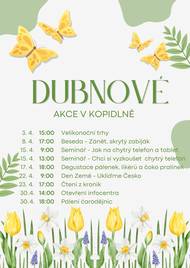 Zveme vás na dubnové akce – čekají nás velikonoční trhy, zajímavá beseda, praktické semináře o chytrých telefonech i příjemná degustace 🍷🍫 Při čtení z kronik si tentokrát připomeneme osobnost Václava Havla od jehož narození by letos uplynulo 90 let. Na závěr měsíce se můžete těšit i na otevření infocentra a tradiční pálení čarodějnic 🔥 👉 Přijďte mezi nás, rádi vás uvidíme 💚