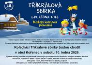 Koledníci Tříkrálové sbírky budou chodit v obci Kořenec v sobotu 10. ledna 2026.
