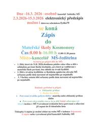 Uzavření Volnočasového areálu Obora park Po předchozí podrobné inventarizaci a zhodnocení stavu dřevin bude ve Volnočasovém areálu Obora park (Biotopu) především v průběhu března, probíhat poměrně rozsáhlá probírka neperspektivních a nebezpečných stromů. Probíhající práce si mohou vyžádat úplné uzavření areálu nebo částečné omezení vstupu do některých jeho částí. Omezení vstupu bude platit i během dalších plánovaných prací, zejména při budování nového vrtu a opravě in-line dráhy. O aktuální situaci bude veřejnost informována prostřednictvím webových stránek města a sociálních sítích. Všechny práce budou dokončeny do 30. dubna 2026. Děkujeme za pochopení Správní odbor MÚ Kosmonosy