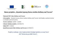 V októbri roku 2024 bola schválená Žiadosť o nenávratný finančný príspevok na Stavebné úpravy Domu smútku v Košťanoch nad Turcom. Výška schválenej sumy je 55 000 €. Výška spoluúčasti obce je vo výške 63 599,97 €.