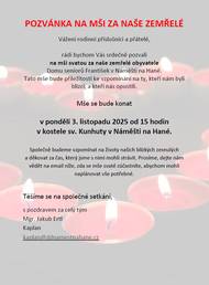 Pozvánka na mši za zemřelé - Dům seniorů František v Náměšti na Hané