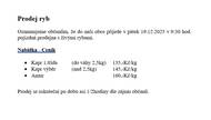 V pátek 19.12.2025 v 9:30 hod. přijede do naší obce pojízdná prodejna s živými rybami.