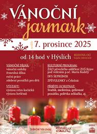 HÝSELÁCI, z. s. srdečně zvou na VÁNOČNÍ JARMARK, který se koná v neděli 7.12.2025 od 14.00 hod. v Hýslích, budova OÚ.
