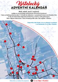 Vydejte se na procházky podvečerním adventním Kostelcem. Každý prosincový den v 16 hodin na některém z vyznačených domů se rozsvítí jedno číslo. U něj vás bude čekat odpověď do křížovky.