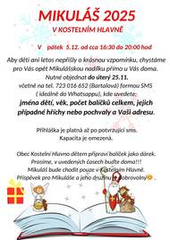 Pošta Kostelní Hlavno bude od 16.6. do 20.6.2025 uzavřena z důvodu čerpání dovolené.. poštovní služby bude zajišťovat pošta Benátky nad Jizerou 1, Husovo náměstí 41/34. Tel.: 954 229 471, nebo 954 229 470.