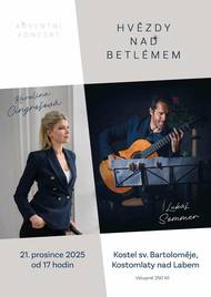 Závěrečným koncertem letošních úspěšných adventních koncertů v kostele sv. Batoloměje v Kostomlatech nad Labem bude vystoupení kytaristy Lukáše Sommera a sopranistky Karolíny Cingrošové - v neděli, 21. prosince od 17 hodin, vstupné 250 Kč.