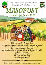 Obec Kotvrdovice vás ve spolupráci se Sborem dobrovolných hasičů Kotvrdovice zvou na MASOPUST - v sobotu 14. února 2026. V 8:00 sraz masek v Obecním domě, v 9:00 předávání práva u obecního úřadu a poté se průvod masek vydá na pochod obcí za hudebního doprovodu Olšověnky. V 18:00 hodin začíná taneční masopustní zábava se skupinou Prorock2 - vstupné dobrovolné. V 20:30 hodin pochovávání basy, 21:00 hodin skupina Kakao. Těšíme se na Vás.