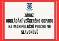 Upozorňujeme, že platí zákaz odkládání veškerého odpadu ve Slavoňově.