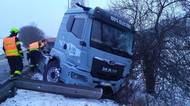 Elektrický tahač smetl ze silnice běžný kamion a zablokoval tah mezi Brnem a Hradištěm