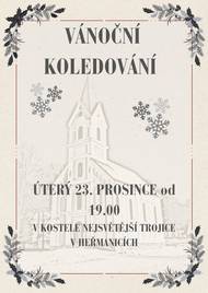 Před 20 dnyVánoční koledováníTradiční vánoční heřmanické koledování v netradičním termínu! Těšíme se v úterý 23. prosince 2025 od 19 hodin v kostele Nejsvětější Trojice v Heřmanicích.