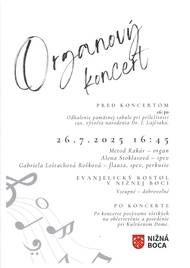 Dňa 26.júla 2025 o 16.45 hod. sa bude konať Organový koncert v Evanjelickom kostole v Nižnej Boci. Pred koncertom o 16.30 hod. bude odhalenie pamätnej tabule pri príležitosti 150. výročia narodenia Dr. J. Lajčiaka. Po koncerte pozývame všetkých na občerstvenie a posedenie pri Kultúrnom dome.