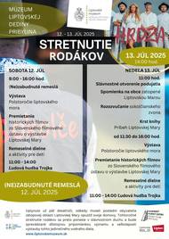 Víkend 12. a 13. júla 2025 bude v pribylinskom skanzene víkendom Stretnutia rodákov z obcí zatopených Liptovskou Marou. Aj 50 rokov od vzniku vodného diela sa budú v spomienkach vracať k významným udalostiam, ktoré navždy zmenili ich životy, ale aj tvár Liptova.