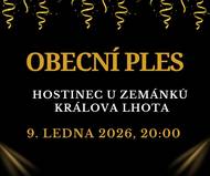 P O Z V Á N Í : - Obec Králova Lhota vás zve na OBECNÍ PLES, který se bude konat v Hostinci U Zemámků, v pátek 9.ledna 2026 od 20 hodin. K tanci a poslechu bude hrát skupina STANEK MUSIC a můžete se těšit na výborné občerstvení a bohatou tombolu U P O Z O R N Ě N Í : - 10.1.2026 po 13, hodině budou po naší obci chodit skupinky Tří králů, výtěžek bude opět sloužit na dokončení Hospice ve Stěžerách v Hradci Králové. S pozdravem Obec Králova Lhota