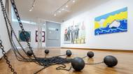 Na fotografii z nové stálé expozice nazvané České umění 20. století a jeho škatulky, kterou lze v Galerii moderního umění v Hradci Králové vidět až do ledna 2030, je obraz Robot hledí od Víta Soukupa z roku 1999.