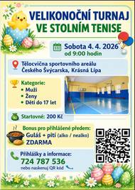 Před 16 dnyÚklid KřiniceVe čtvrtek 23. dubna 2026 se s námi můžete vydat uklízet říčku Křinici a město. Sraz máme ráno v 8:00 před krásnolipskou radnicí. S sebou budete potřebovat gumové rukavice, holínky a dobrou náladu. Po úklidu bude následovat opékání buřtů na sportovním areálu. Na akci je nutné se nejpozději do 21. dubna 2026 přihlásit prostřednictvím e-mailu kino@krasnalipa.cz. V případě špatného počasí bude akce zrušena.