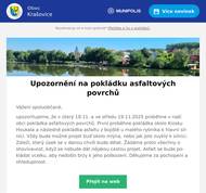 Vážení spoluobčané, upozorňujeme, že v úterý 18.11. a ve středu 19.11.2025 proběhne v naší obci pokládka asfaltových povrchů. První proběhne pokládka okolo Kiosku Houkala a následně pokládka asfaltu z bojiště u malého rybníka k hlavní silnici. Vždy bude možné projet buď okolo mlýna, nebo jak jste zvyklý k silnici. Záleží, který úsek se v danou chvíli bude dělat. Žádáme proto všechny o shovívavost, když se nebude dát nějakou cestou projet. Asfalt se bude pokládat vcelku, aby nedošlo brzy k jeho poškození. Děkujeme za pochopení a ohleduplnost.