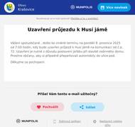 Informace o uzavření Husí jámy ve dnech 23.-25.9.2025 z důvodu napojení vodovodního řádu. Dále pak od 1.10.2025 bude zahájena oprava komunikace okolo kiosku Houkala.