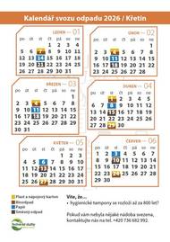 Kalendář svozů odpadů na rok 2026 je zveřejněný na internetových a facebookových stránkách obce. Tištěný kalendář spolu se zpravodajem bude dodán do všech domácností v obci do konce tohoto týdne. Tuto středu 7. ledna bude svoz žlutých a hnědých popelnic. Srdečně zveme všechny děti, ale i dospěláky na veselou pohádku O pekelné base. Divadelní představení nám přijedou opět po roce zahrát ochotníci z Velkých Opatovic. Koná se v neděli 11. ledna v KD Křetín od 16 hodin. Vstupné je dobrovolné.
