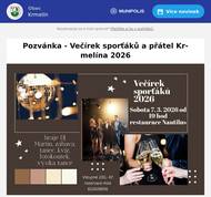 Drazí spoluobčané, srdečně Vás zveme na naší akci - Den Zdraví Krmelín. Přijďte nás podpořit! Akce je vhodná, jak pro děti, tak i dospělé, prostě zábava pro celou rodinu. Doporučujeme, aby jste dorazili pěšky, na kole, nebo hromadnou dopravou - autobusem. Parkování na ulici u Motokár Krmelín bude omezeno. Bude možné parkovat podél ulice a to ze strany Oprechtic/Krmelína a ze strany Nové Bělé. Ulice nebude průjezdná. Děkujeme za pochopení a těšíme se na Vás! Obec Krmelín a její dobrovolníci