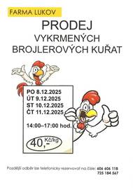 Středa 30.4.2025 v 11.00 hod prodej chovných kuřic: barva hnědá,černá,kropenatá,sussexová,bílá , stáří 21 týdnů, cena 285,- Kč Rozkrmené krůty stáří 6 týdnů cena 330,-Kč/ks