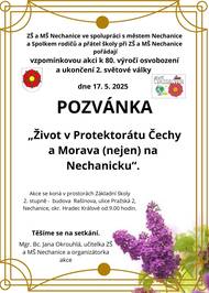 ZŠ Nechanice zve na vzpomínkovou akci k 80.výrocí od konce 2.světové války dne 17.5.2025 od 9.00 hod.