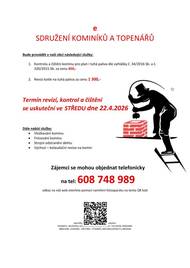 za následující ceny: - Čištění komínů: 450 Kč - Revize kotlů na tuhá paliva: 1.300 Kč •Dále nabízí levné vložkování a frézování komínů, výchozí-kolaudační revize Zájemci se mohou objednat na telefonním čísle: 608 748 989.