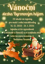 Česká pošta Kvasiny oznamuje, že z provozních důvodů bude v úterý 16.12.2025 zavřeno. Obec Skuhrov nad Bělou vás zve na Vánoční koncert smíšeného komorního sboru X-tet Rychnov nad Kněžnou. Koncert se koná ve čtvrtek 18.12. od 18.00 hod. v kostele Svatého Jakuba ve Skuhrově nad Bělou. Knihovna Kvasiny zve na Vánoční stezku Byronovým hájem. Čeká vás 20 úkolů do tajenky. Tajenku si lez vyzvednout v obchodě u Benešů, ve vestibulu obce nebo na webových stránkách obce. MUDr. Juránková ze Skuhrova nad Bělou oznamujeme, že ve středu 17.12. nebude z důvodu dovolené ordinovat. Zastupuje MUDr. Juza v Solnici.