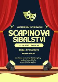 Obec Kyškovice a Roudnický ochotnický spolek Vás srdečně zvou na veselohru Scapinova šibalství v režii Evy Synkové. V sobotu 21.3.2026 od 19hod na sále KD v Kyškovicích.