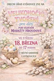 Obecní úřad Kyškovice zve na velikonoční tvoření pro děti. Ve středu 18.3.2026 od 17 hod v místní knihovně.