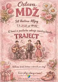 S radostí Vám oznamujeme, že se vrací oblíbená akce Oslava MDŽ! Místo: sál hostince Mlýny Čas: od 19:00 K tanci a poslechu zahraje country kapela Traject. Přijďte si užít večer plný hudby, tance a skvělé nálady – těšíme se na Vás!