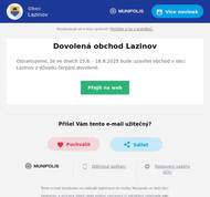 Oznamujeme občanům, že ve dnech 3. 9. 2025 - 6. 9. 2025 bude uzavřen obchod v Lazinově.