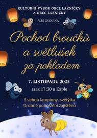 Zítra 30. dubna proběhne na sportovním areálu v Lazníčkách slet Čarodějnic. Sraz je naplánován na 18 hodin. Špekáčky pro děti jsou připraveny. Dále vám oznamujeme, že nově vybudovaná čistírna odpadních vod v Lazníčkách je od počátku roku ve zkušebním provozu a nejzazší termín připojení na obecní kanalizaci je konec září, po této lhůtě bude muset každý majitel nemovitosti dokládat vývoz žumpy či septiku. Odvádění odpadních vod přepadem do potoka od konce září nebude možné. Porušením hrozí správní řízení a vysoká pokuta od životního prostředí.