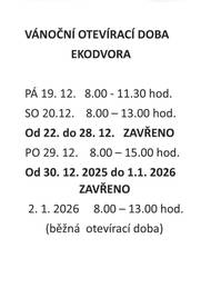 VÁNOČNÍ OTEVÍRACÍ DOBA EKODVORA .....