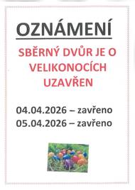 Oznamujeme občanům, že sběrný dvůr bude o Velikonocích uzavřen.