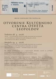 Před 19 dnyVYSTÚPENIE KSF MESTEČKO - OTVORENIE KULTÚRNEHO CENTRAPozývame vás na vystúpenie miestneho Klubu slovenského folklóru Mestečko, ktoré sa uskutoční v rámci otvorenia Kultúrneho centra Osveta v nedeľu 19. 4. 2026 o 15:00. Príďte si vypočuť a pozrieť pásmo V Mestečku sa radujú v podaní našich leopoldovských spevákov, hudobníkov a tanečníkov. Vystúpenie je zadarmo, z kapacitných dôvodov je však potrebné rezervovať si vstupenky. Ak potrebujete poradiť s rezerváciou, radi vám pomôžeme: Michalea Kollárová, +421910 434 380.