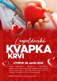 Před 9 dnyLEOPOLDOVSKÁ KVAPKA KRVI❤️Mesto Leopoldov v spolupráci s transfúznou stanicou v Trnave organizujú Leopoldovskú kvapku krvi v utorok 28. 4. 2026 od 08.00 h do 10.00 h v klubovni Mestskej knižnice v Leopoldove. Bližšie informácie: +421 910 434 380.
