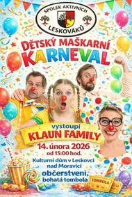 Zveme Vás na kulturní akci, která se uskuteční v sobotu 14. února v Kulturním domě v Leskovci nad Moravicí. Na návštěvníky čeká občerstvení a tombola. Všichni jsou srdečně zváni. https://www.leskovecnadmoravici.eu/akce-a-volny-cas/kalendar-akci/maskarni-karneval-pro-deti-769_406cs.html