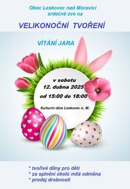Přijďte oslavit jaro na Velikonoční tvoření v Leskovci n. M. https://www.leskovecnadmoravici.eu/akce-a-volny-cas/kalendar-akci/prijdte-oslavit-jaro-na-velikonocni-tvoreni-v-leskovci-n-m-707_389cs.html
