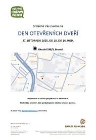 Informujeme vás o akci krizového centra "Den otevřených dveří", který se koná 27. listopadu 2025 od 10 do 16 hodin v Bruntále. Na akci budete mít příležitost se informovat o projektech a aktivitách a prohlédnout si prostory, kde poskytují krizovou pomoc.