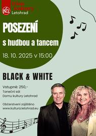 POSEZENÍ S HUDBOU A TANCEM. Zveme vás v sobotu 18. října od 15 hodin do tanečního sálu Domu kultury Letohrad. K poslechu i tanci zahraje BLACK & WHITE. AKCE 1+1 vstupenka zdarma! Občerstvení je zajištěno. Přijďte si zatančit. Kulturní centrum Letohrad