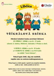 Tříkrálová sbírka, největší charitativní sbírková akce v České republice, bude letos probíhat i v Libčicích. A to dnes, v pátek i v sobotu. Dnes, ve středu 7. ledna budou tři králové procházet Libčicemi v čase od 16 do cca 17 hodin v ulicích 5. května, Hřbitovní, Zahradní, V Pražce a v jejich blízkém okolí. V pátek 9. ledna pak tři krále potkáte cca v 16 až 19 hodin a v sobotu mezi 9 a 12 hodinou na sídlišti "horní Sahara". Tříkrálovou sbírku v Libčicích koordinuje Centurm Malina. Pokud chcete, aby vás tři králové navštívili, nebo pokud máte zájem rozšířit skupinky koledníků - napište na centrum-malina@seznam.cz. Vykoledované peníze pomohou statisícům lidí v nouzi prostřednictvím Charity Česká republika, která je pořadatelem sbírky. Děkujeme, že pomáhate.