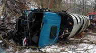 /FOTO/ K dopravní nehodě nákladního vozidla vyjížděly složky integrovaného záchranného systému v pondělí 2. února před polednem. Auto se zřídilo z vysoké stráně a skončilo na boku, pokroucené po pádu. Kvůli zraněným vyjížděly k nehodě i dvě posádky záchranářů.