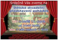 Srdečně zveme na dětské divadelní představení pohádek "Když jsem já sloužil" a "O Koblížkovi". Termín: neděle 12.4. od 14.00 hodin Místo: sál hospody U Kuby