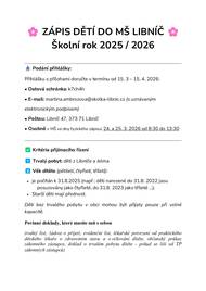 🌸 ZÁPIS DĚTÍ DO MŠ LIBNÍČ 🌸