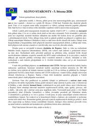 Dobrý den, máme pro Vás k přečtení Slovo starosty z 5. března 2026. Přejeme hezký de